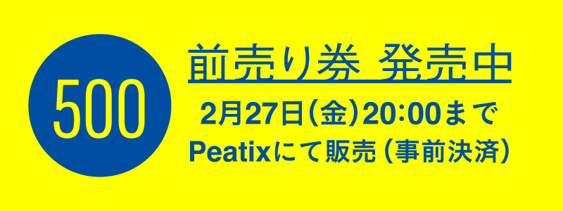※前売り券のチケット1枚につき1名様のみ有効となります。