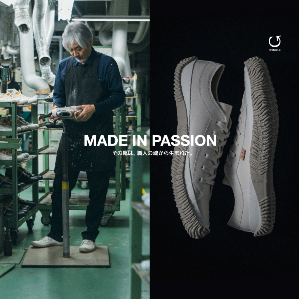 バルカナイズ製法にこだわったレザースニーカーとして2002年に「SPINGLE MOVE」としてデビュー。広島の⾃社⼯場で培った職⼈技術と⾰を中心とした良質素材を融合させたスニーカーをお届けします。
