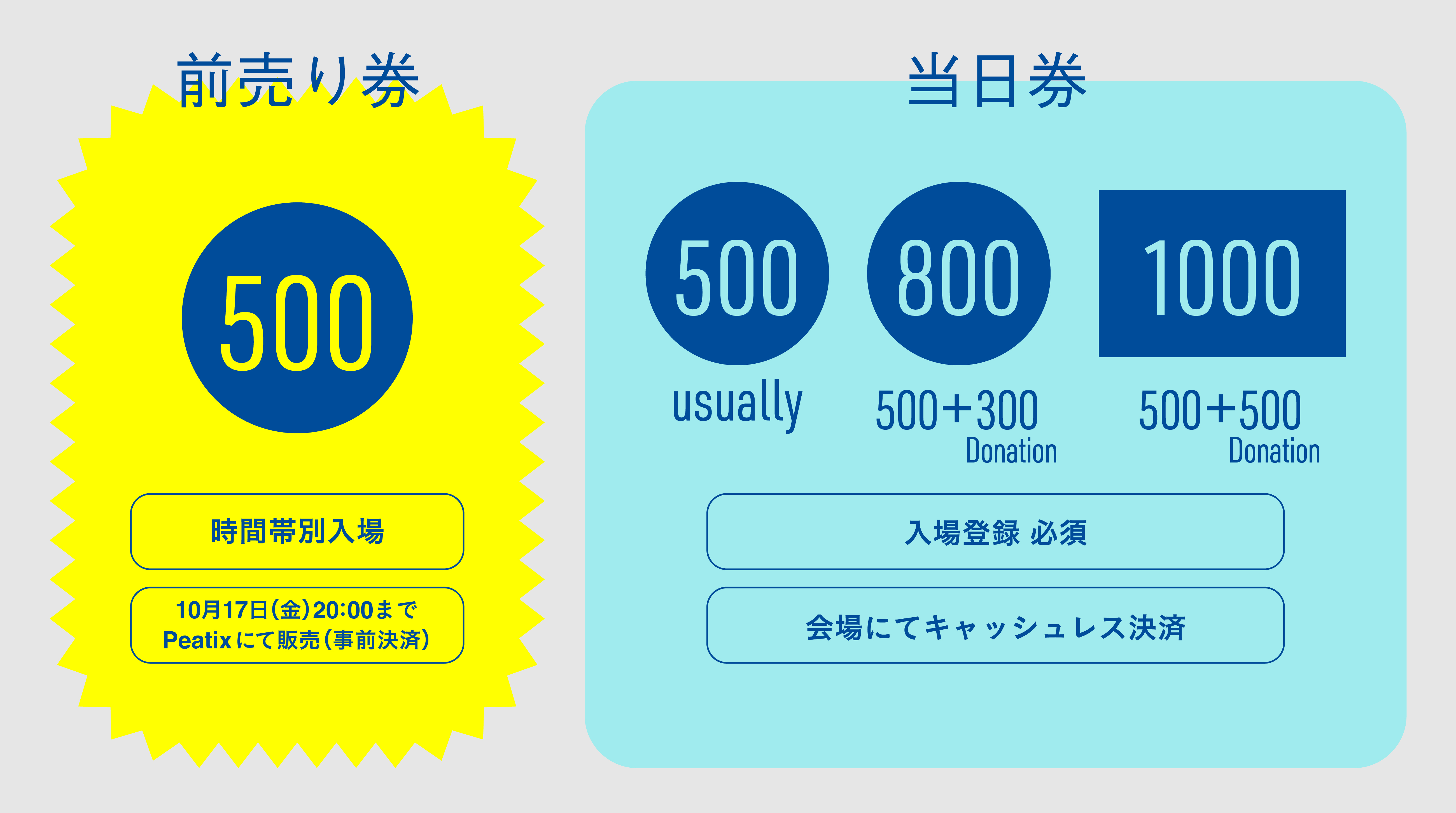 各入場料は入場時にキャッシュレスにてお支払いをお願いいたします。