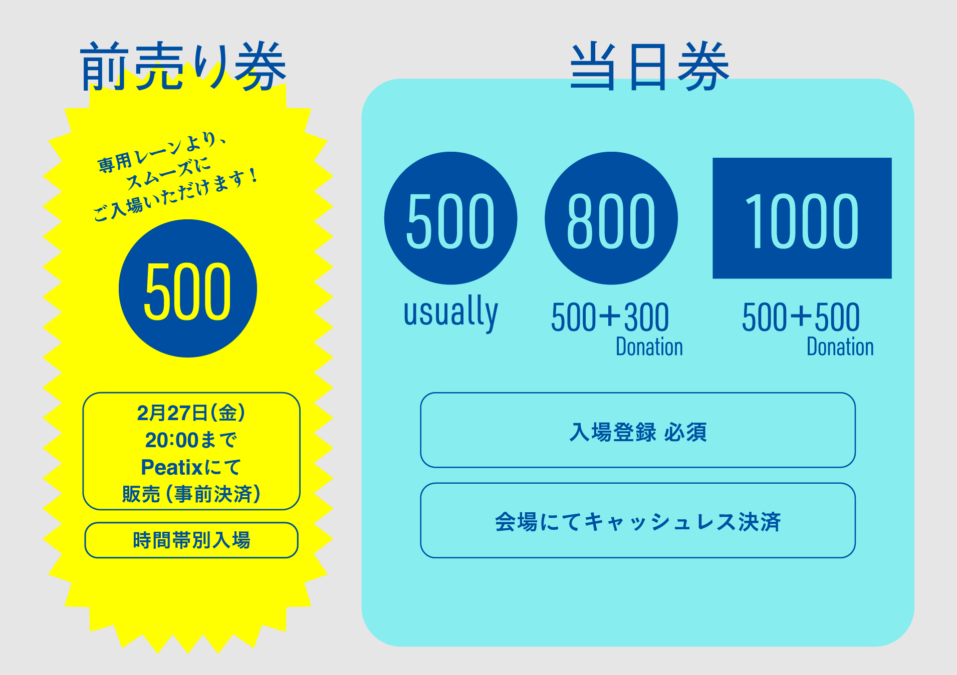 各入場料は入場時にキャッシュレスにてお支払いをお願いいたします。