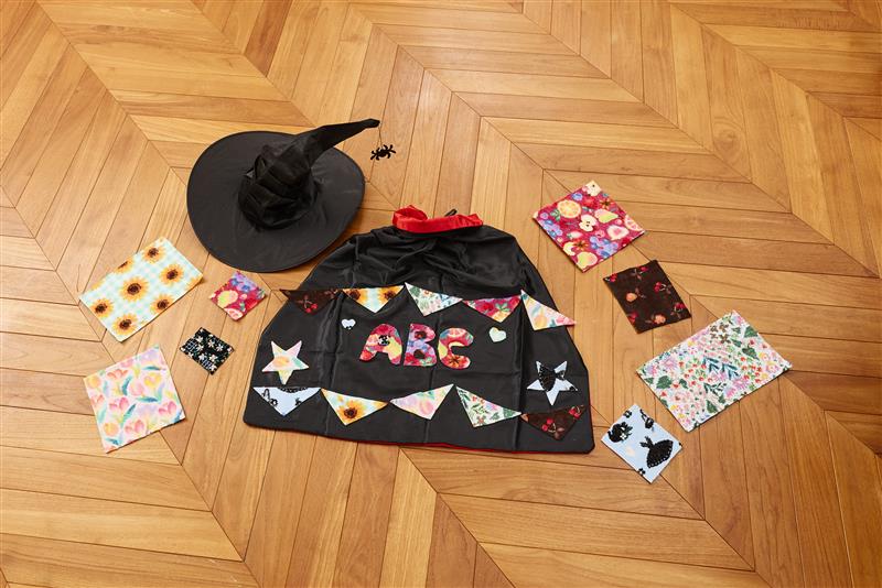 子どもたちに感性の駆動を届けたい!フェイラーの商品の製造工程でどうしても出てしまうシュニール織生地の残反(端切れ)を貼って、自分だけのオリジナルハロウィンマントを作ろう! フェイラーの心踊るデザイン&カラーの世界を楽しみながら、ハロウィンに向けてマントづくりを体験いただけます。帽子もプレゼント!今年のハロウィンが子どもたちにとって、特別な思い出になりますように。